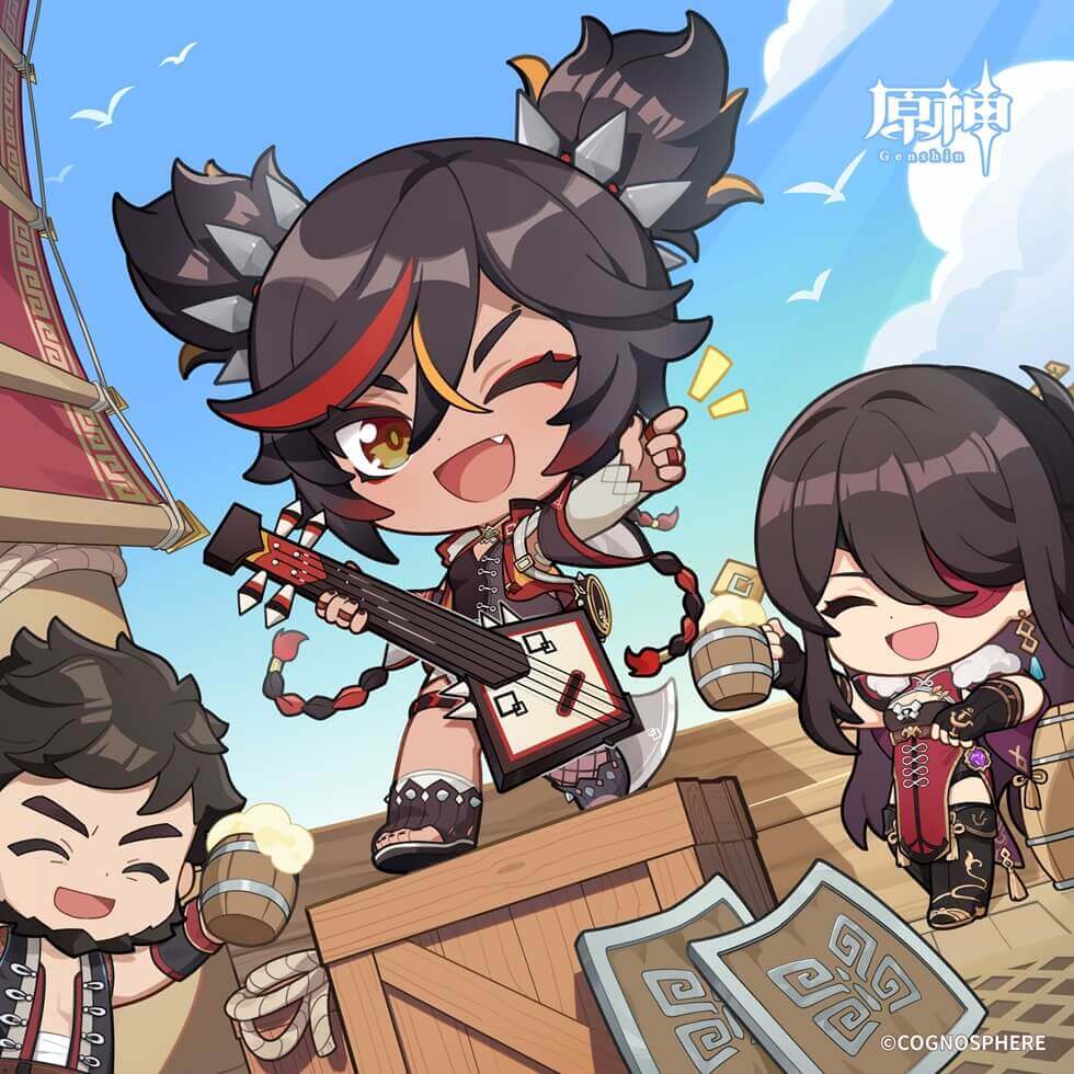 うちの船隊は今、オルモス港で休憩を取ってる。で、さっき酒場に寄ったら、店主が筋金入りの航海マニアで看板料理を奢ってくれてな!ははっ、璃月じゃ「礼は往来を尊ぶ」っていうし、貰いっぱなしはダメだろ?それで店主を誘って、一等航海士に甲板を案内させてるんだ。楽しんでくれるといいんだが!