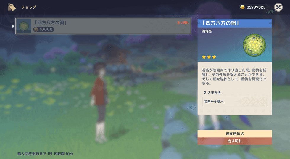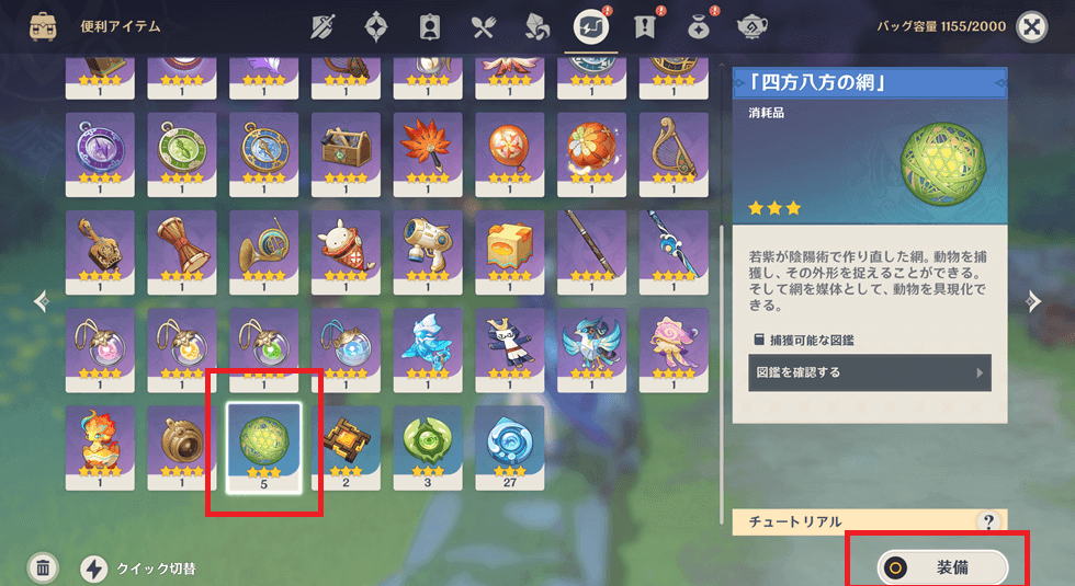 原神で「四方八方の網」を使うことで、フィールド上にいる生物を一部捕まえることができるようになります!