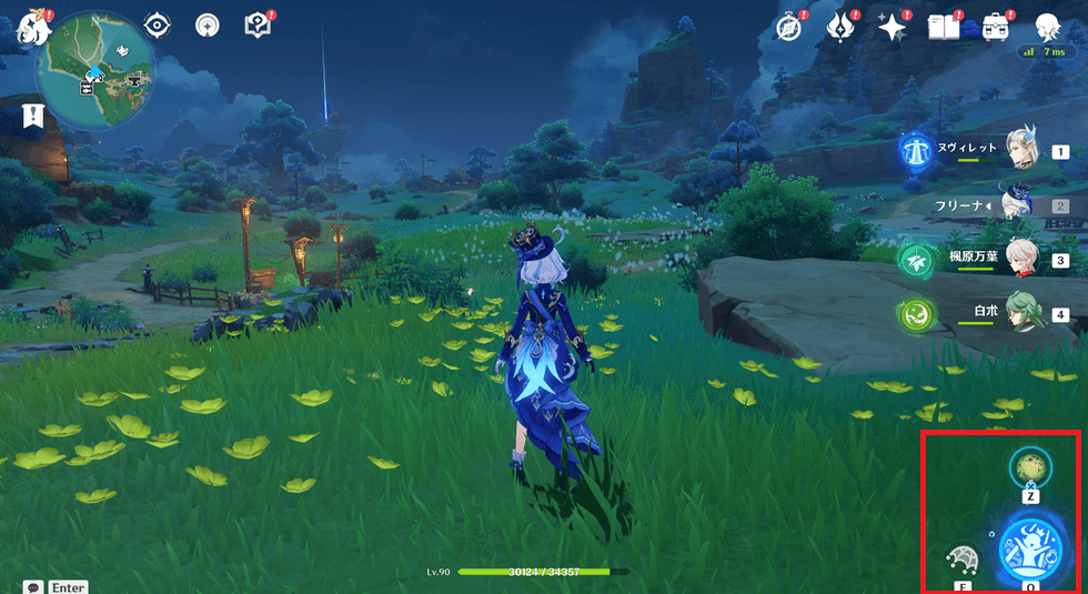 PC版の場合は装備後に「Zキー」を押すと、元素スキルの場所が「網マーク」に変わります!
