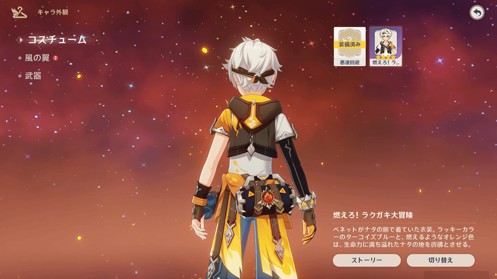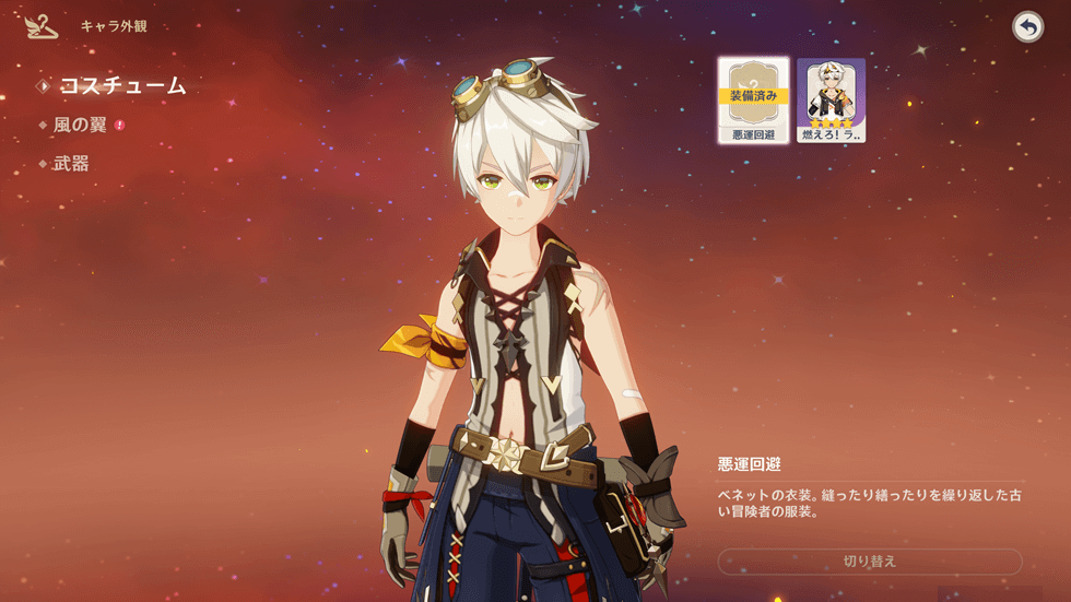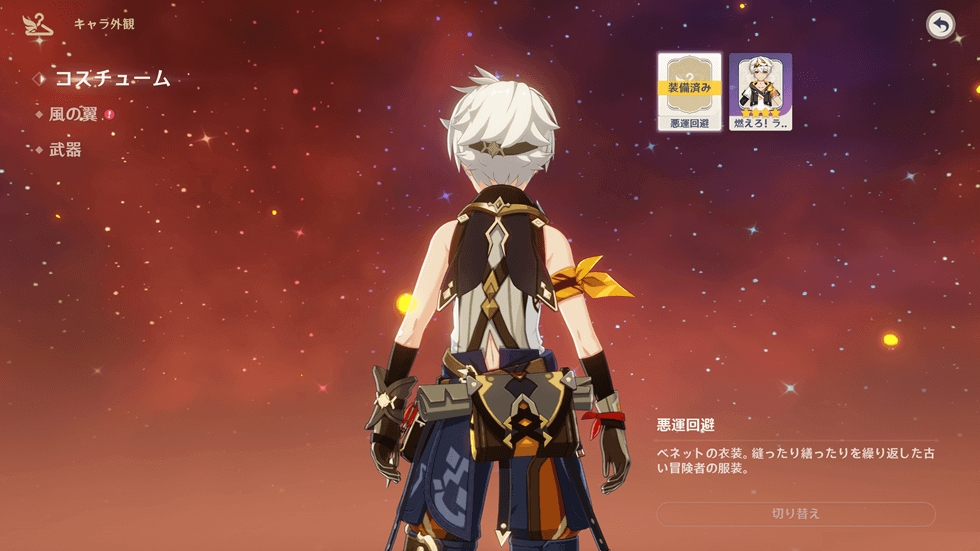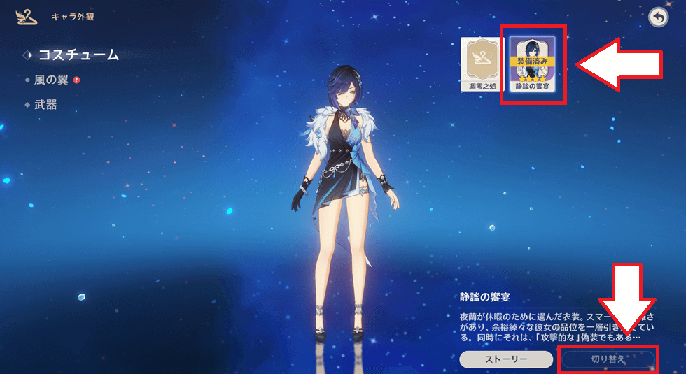 2.新コスチュームを選択し、右下の「切り替え」を選択