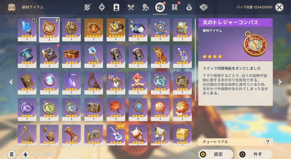 - トレジャーコンパスは探索度を上げるのに必須なアイテム