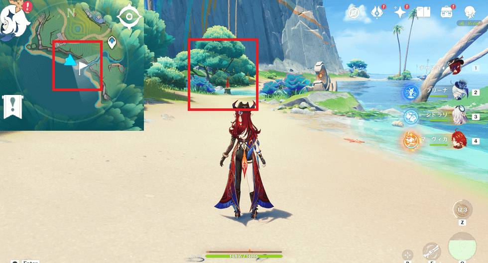 トレジャーコンパスで索敵された宝箱は、画面左上のミニマップでも表示されます。