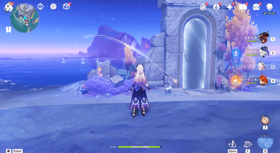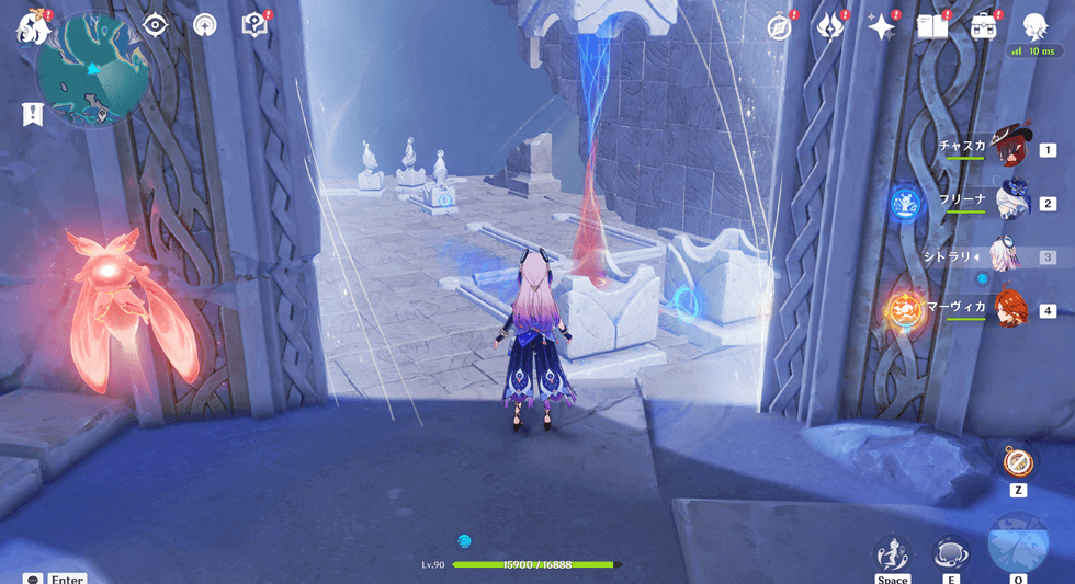 秘境にワープしたら近くに「祈月の像(鏡みたいなやつ)」があるので、近づきます。