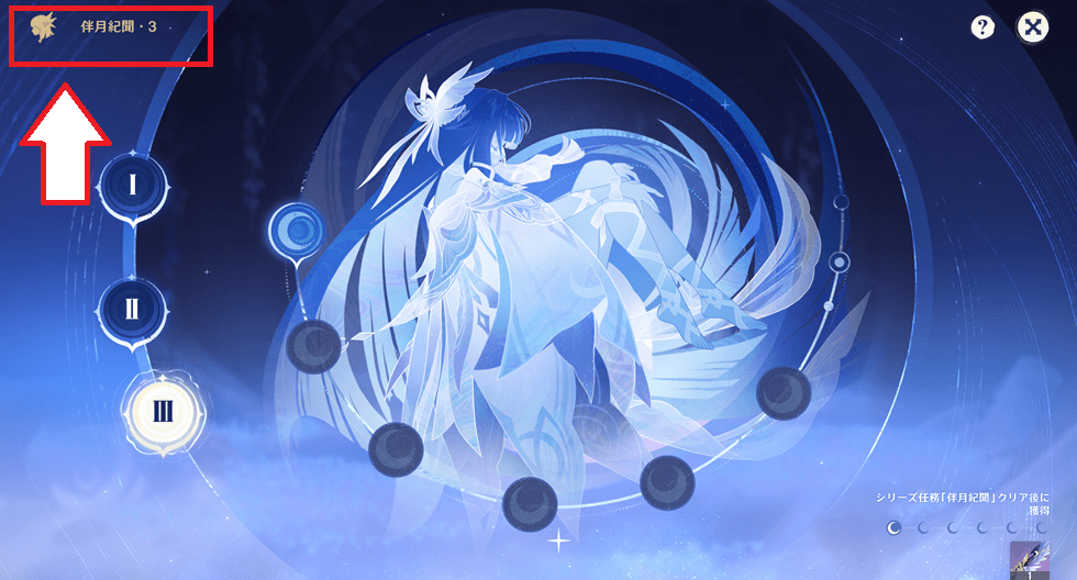 この表示が無い場合は、まだ伴月紀聞が3に到達していないです。