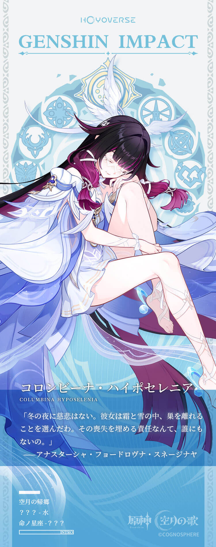 ホーム コロンビーナ 2025年12月20日2026年1月8日 SHARE ポスト シェア はてブ LINE キャラクター名 性別 コロンビーナ 女性 誕生日 声優 --月--日 Lynn キャラクター詳細 出身 武器 ナドクライ 法器 レアリティ 元素 ★★★★★ 立ち絵 エピソード 同じ出身のキャラクター イルーガ ヤフォダ ネフェル フリンズ アイノ ラウマ イネファ キャラクターごとのスマホ・PC壁紙一覧! 【原神】キャラ別×国別の公式壁紙まとめ|スマホ&PC用の高画質画像! キャラクターリストへ戻る